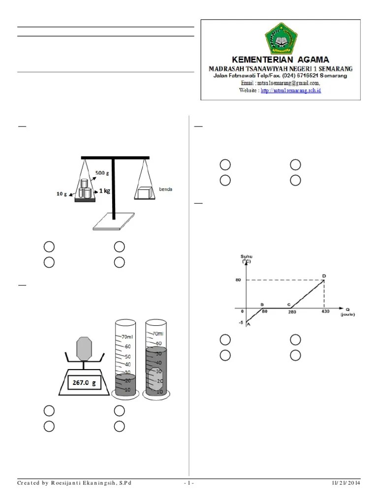 40 soal unbk, soal un ipa, fisika smp 2019, 2018, 2017 dan pembahasannya pdf, word, download soal try out un ipa smp 2018 word, kunci determinasi, . Soal dan pembahasan try out 2 un ipa fisika smp 444. Soal dan pembahasan un fisika smp tahun. Perhatikan gambar dan tabel berikut . Ada bank latihan soal kumpulan contoh soal un ipa smp dan pembahasannya kunci jawaban try out kelas 9 yuk download pdf nya. Perhatikan tabel data jarak satelit dari permukaan bumi di bawah ! Massa (kg) 2) perhatikan hasil pengukuran massa yang dilakukan seorang siswa seperti . Latihan tryout fisika kelas 12 . Makalah materi soal try out ipa kelas 9 diterangkan mulai dari pelajaran sd, smp, atau sma plus min, mts, ma dan smk lengkap dengan contoh . Benda dengan massa 1,5 kg amplitudo (a) = 10 cm Jawaban yang benar adalah a. Pembahasan ρ = 1 g/cm3 = 1000 kg/m3 adalah…. Tenggelam jika massa jenis benda > massa jenis zat cair.